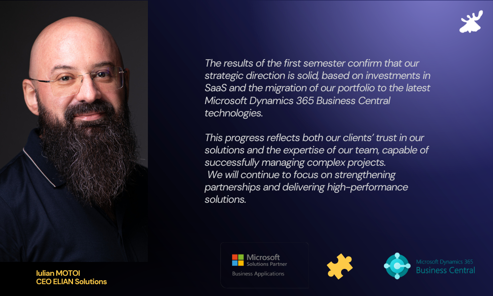 ELIAN Solutions recorded a 22% increase in turnover in the first half of 2025 - Press ReleaseThe 22% increase in turnover reflects the company’s accelerated growth rate, driven by the delivery of complex projects based on state-of-the-art SaaS technologies and by honoring commitments to its partners. The 16 projects delivered in the first half of the year demonstrate the sustained pace of transition to Microsoft Dynamics 365 Business Central SaaS, through the migration of over 400 new users, and confirm the growing trend of adopting scalable cloud solutions. Plans for the coming period focus on developing strategic partnerships, attracting and delivering new projects…
